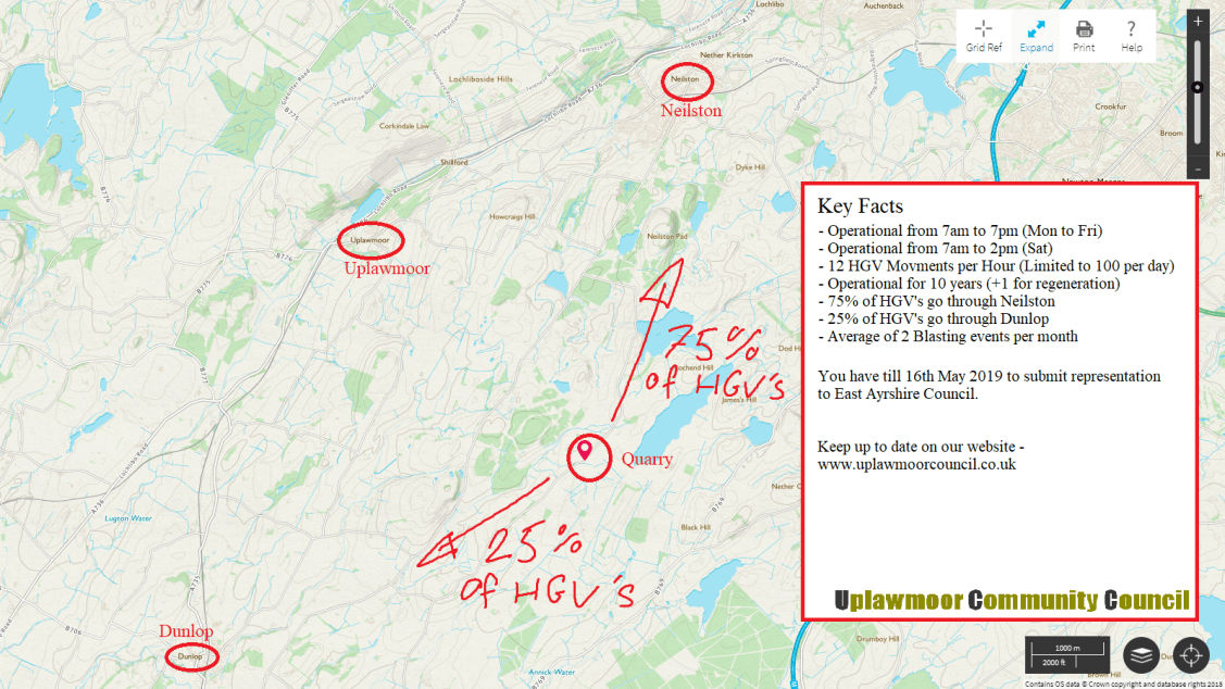 We’re working with our colleagues in Dunlop and Neilston Community Councils to fully assess the likely impact of the quarry, but from our investigation so far we have three main concerns: