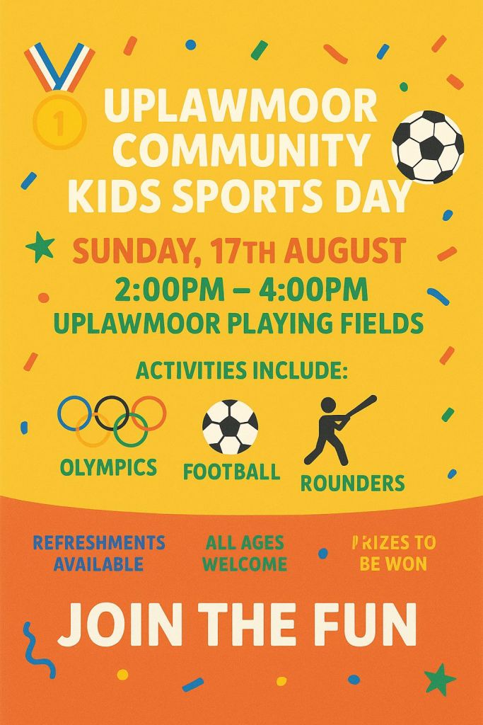 Sunday 17th August, 2025 – The event will run between 2 pm and 4 pm. We’re looking for help before, during and after. Please contact us and help make the sports day a success for the kids and the village.